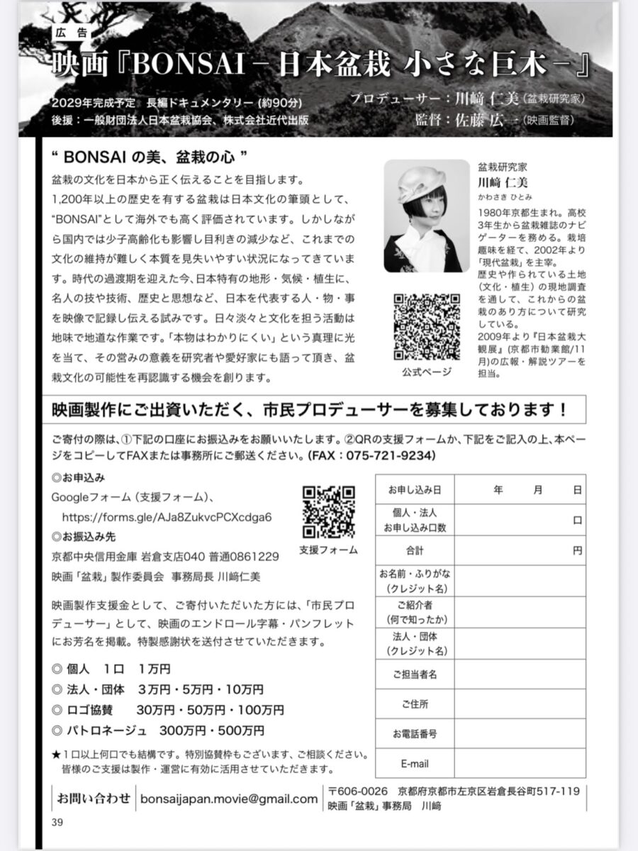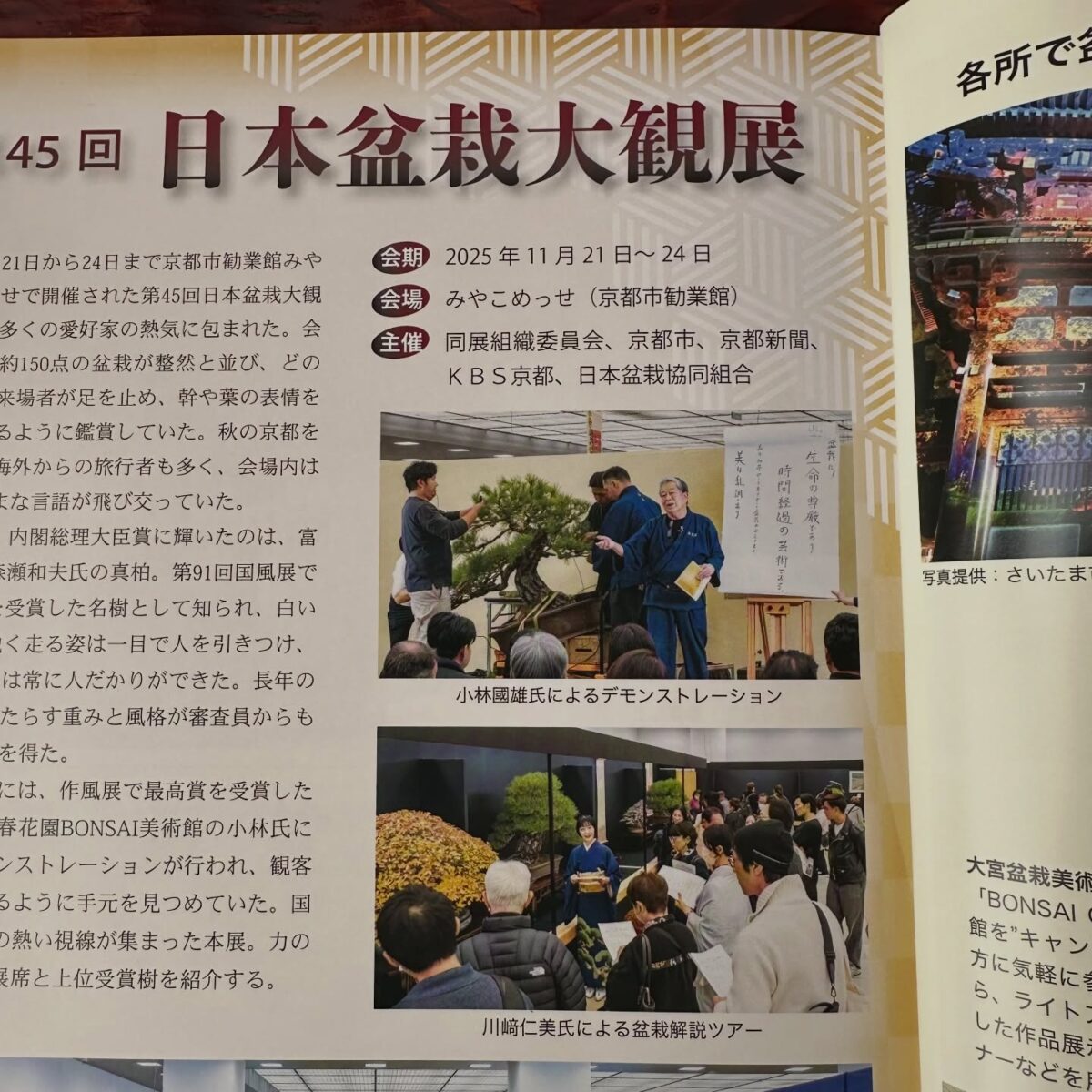 映画『#BONSAI 』の市民プロデューサー募集の広告と、「第45回日本盆栽大観展」京都新聞さん企画、日英同時通訳の解説ツアーの様子を掲載いただきました。昨年は