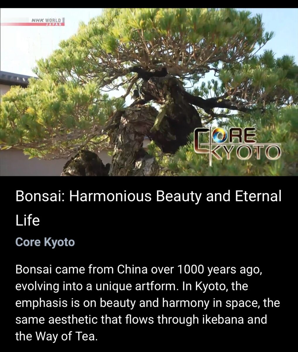 国際放送・NHKワールドJAPNの「Core Kyoto」さんで、京都の盆栽文化の特集です。